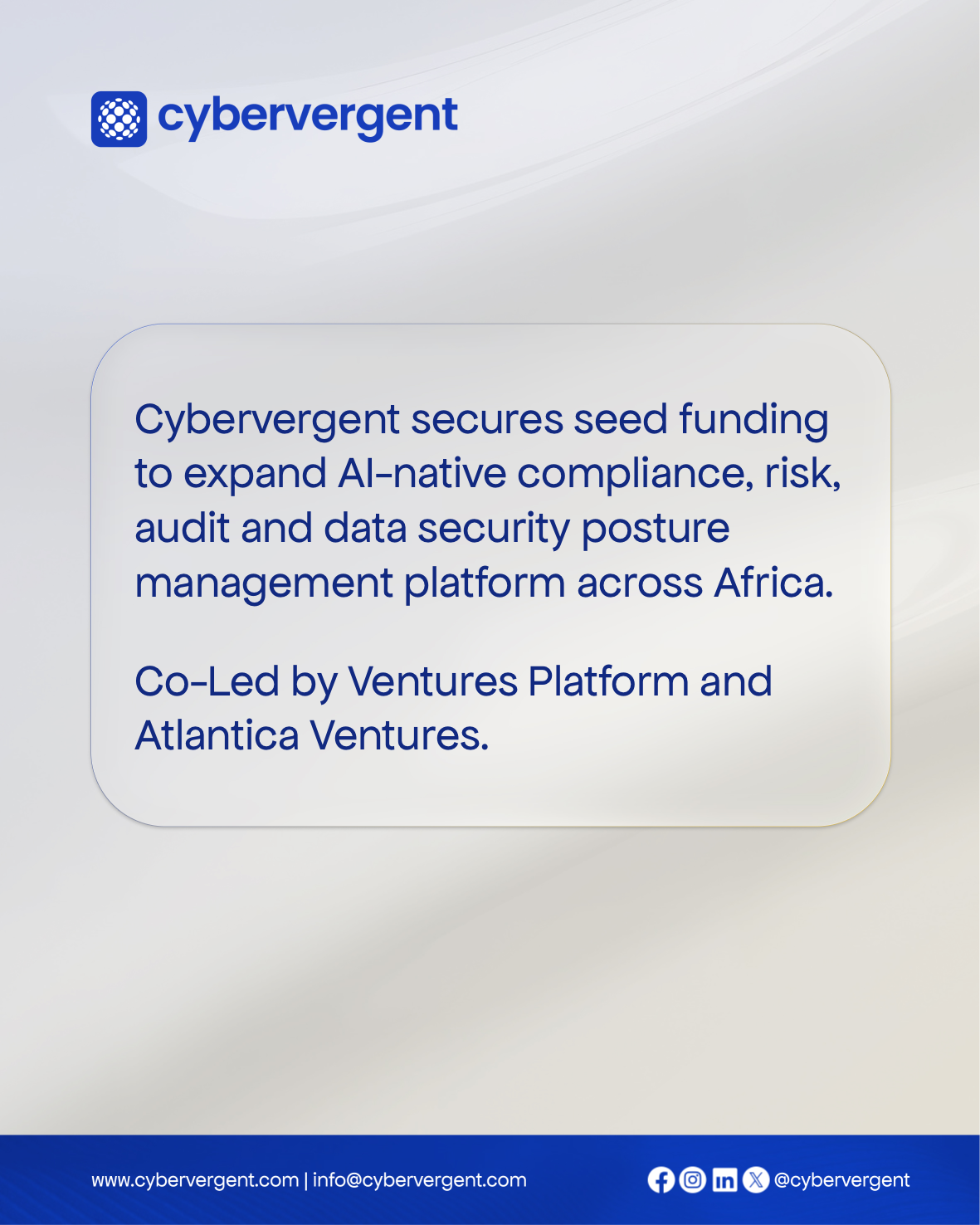 Today, we are proud to announce that Cybervergent has raised $3 million in a seed funding round, co-led by Ventures Platform and Atlantica Ventures, to accelerate the growth of its AI-native posture management and governance orchestration platform across Africa.